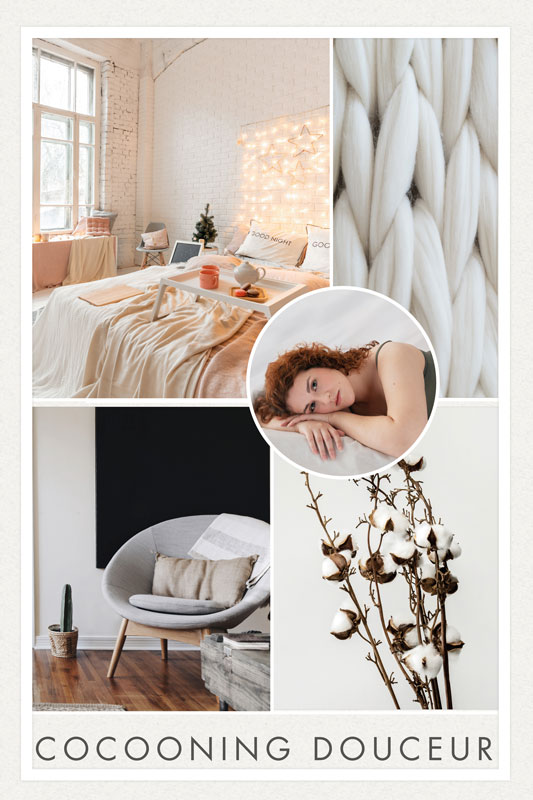 Pour un décor tout en douceur, on mise sur des couleurs claires et pastels comme le Rose Dragée ou un Verre Laqué Grège pour diffuser une lumière douce. Le Gris Chiné donnera du relief et s'associera parfaitement au mobilier tandis que le Chêne Cendré réchauffe l'atmosphère.
