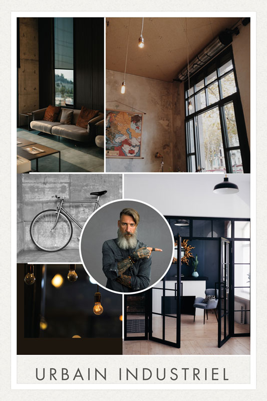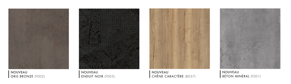 Aménagez une pièce de vie au style industriel à la manière d’un loft en jouant avec des matériaux bruts comme les décors Béton Minéral ou un Gris Bronze et bois structuré comme le Chêne Caractère. L'Enduit Noir apporte le contraste idéal pour cette tendance.